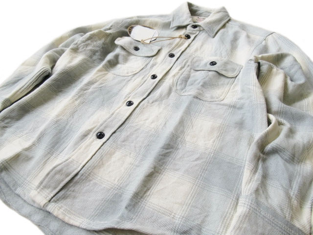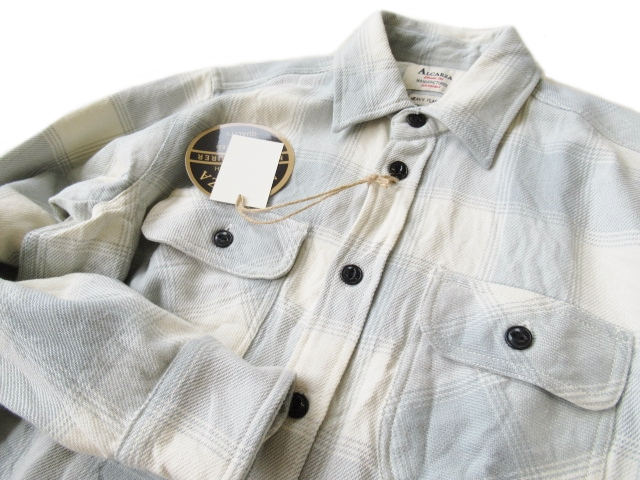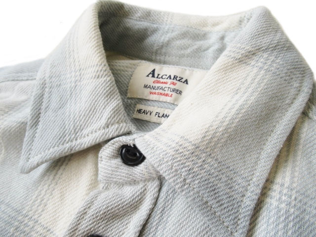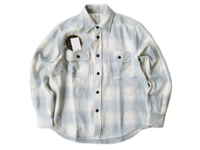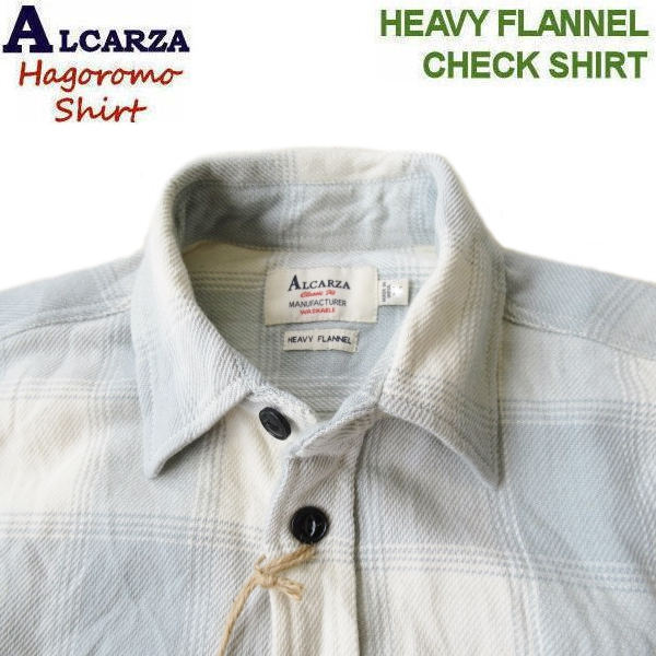 ALCARZA【ヘビーフランネルオンブレチェックシャツ】羽衣シャツ/ネルシャツ・ワークシャツ 629-00 51)サックスグレー/ホワイト Lサイズ