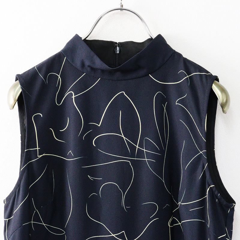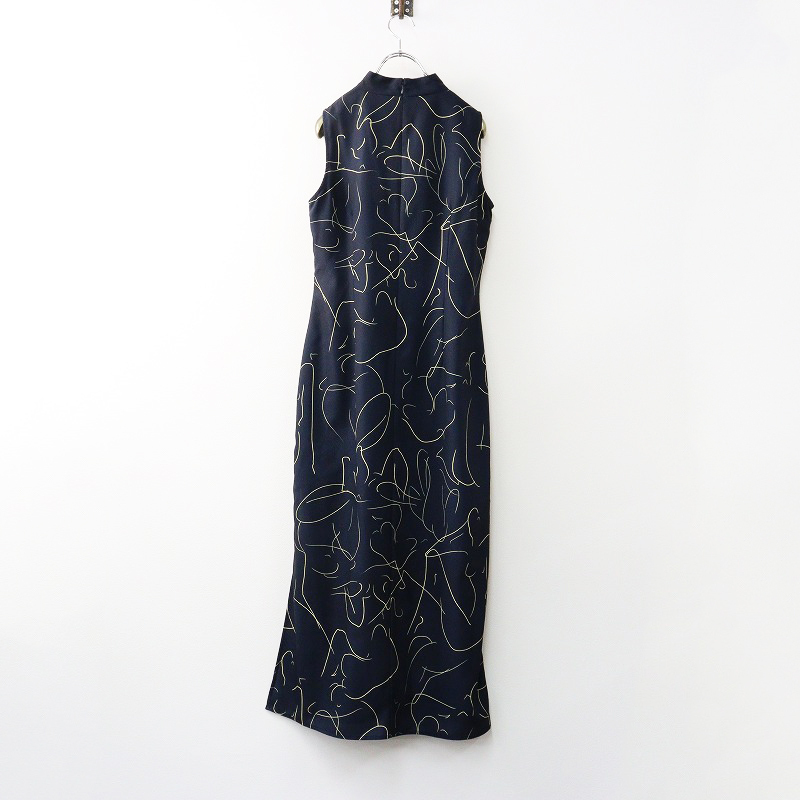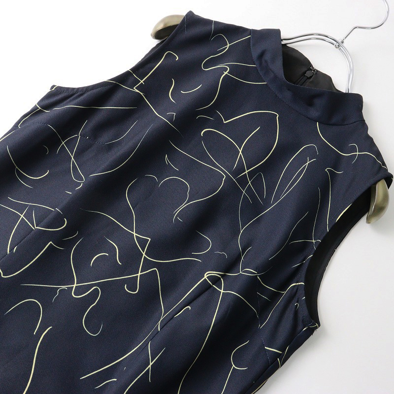 2023SS アメリヴィンテージ AMERI VINTAGE MEDI BODY LINE ART DRESS S\ネイビー ノースリーブ ワンピース スリット【2400014623444】