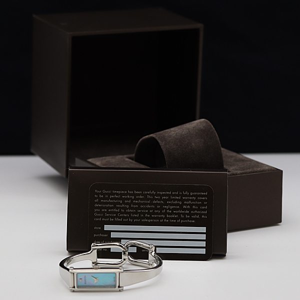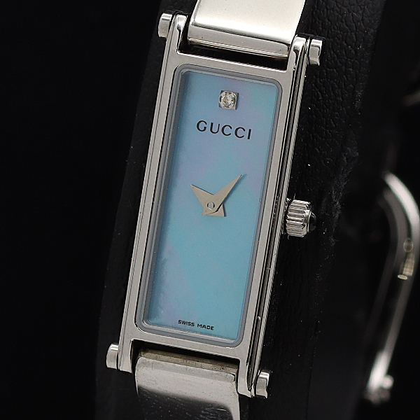 1円 保/箱付 稼働 グッチ 1500L QZ 1PD ブルーシェル文字盤 レディース腕時計 3668000 9PRT MST
