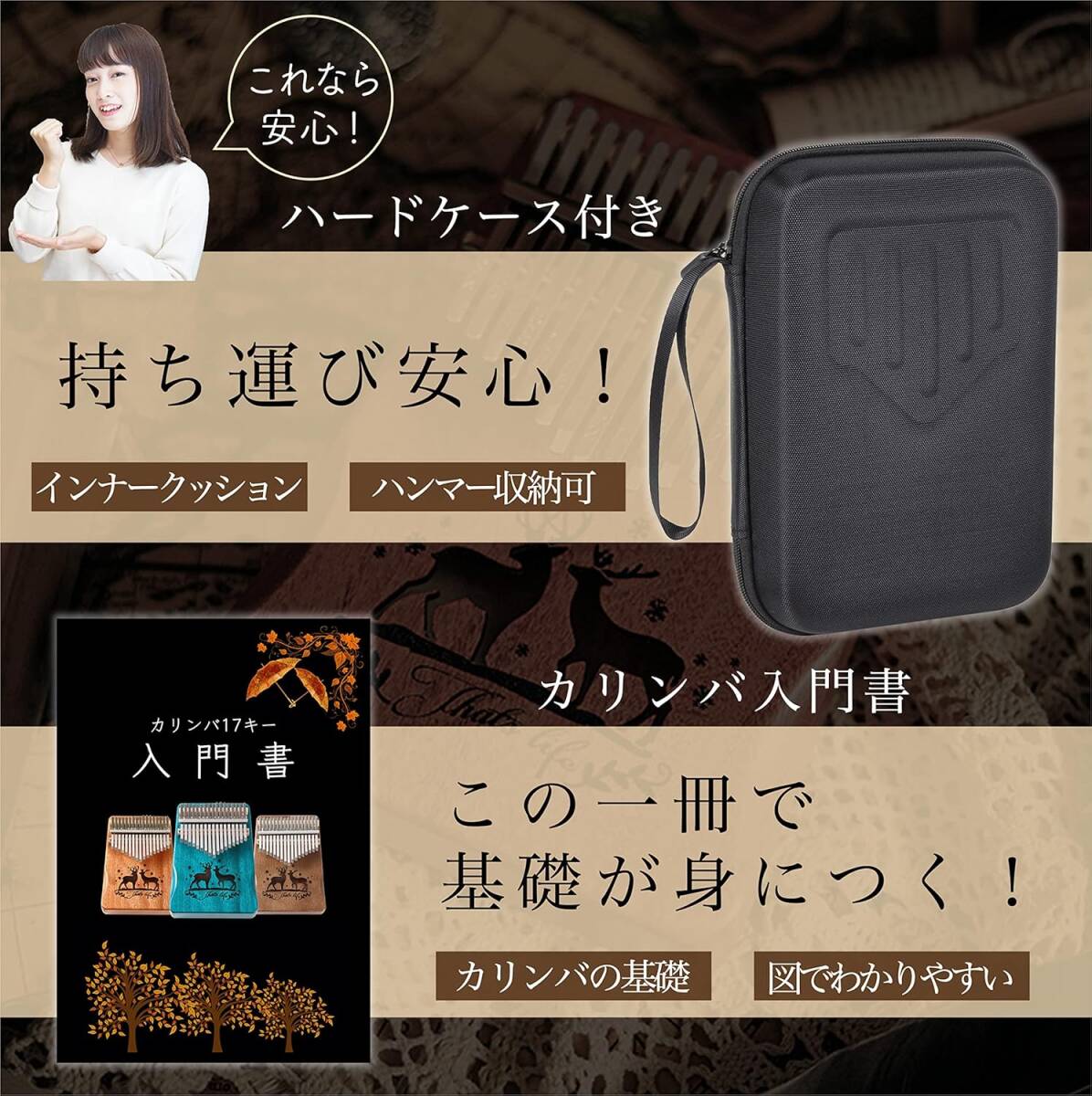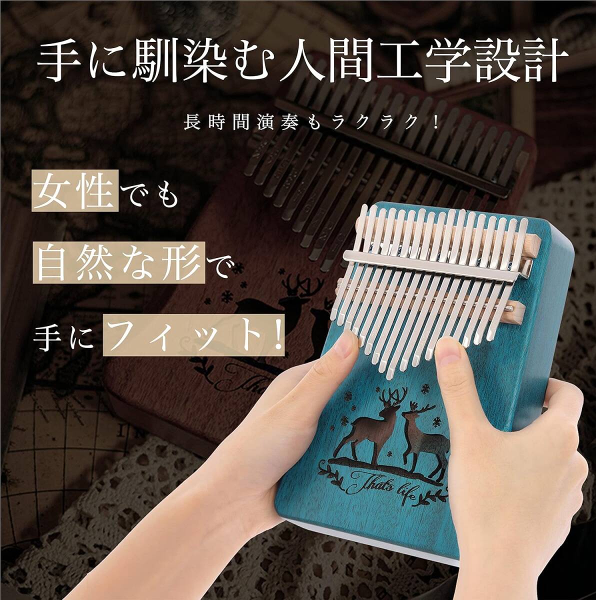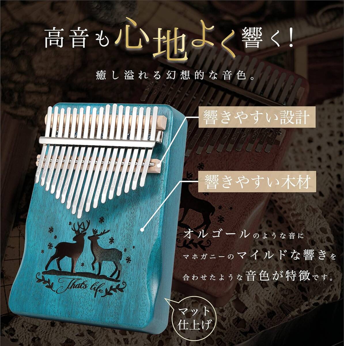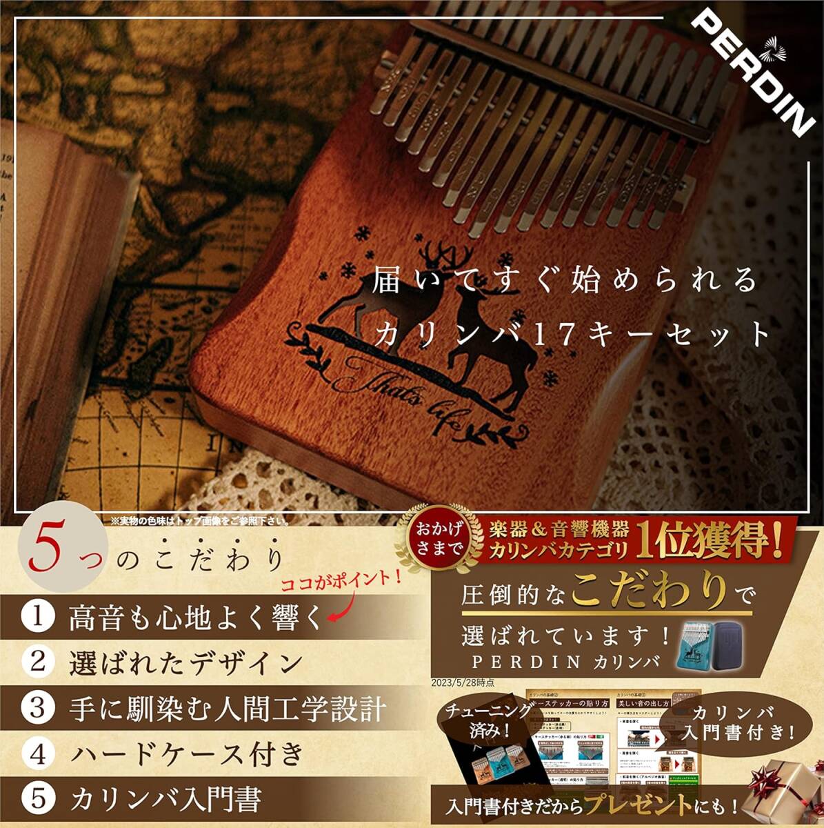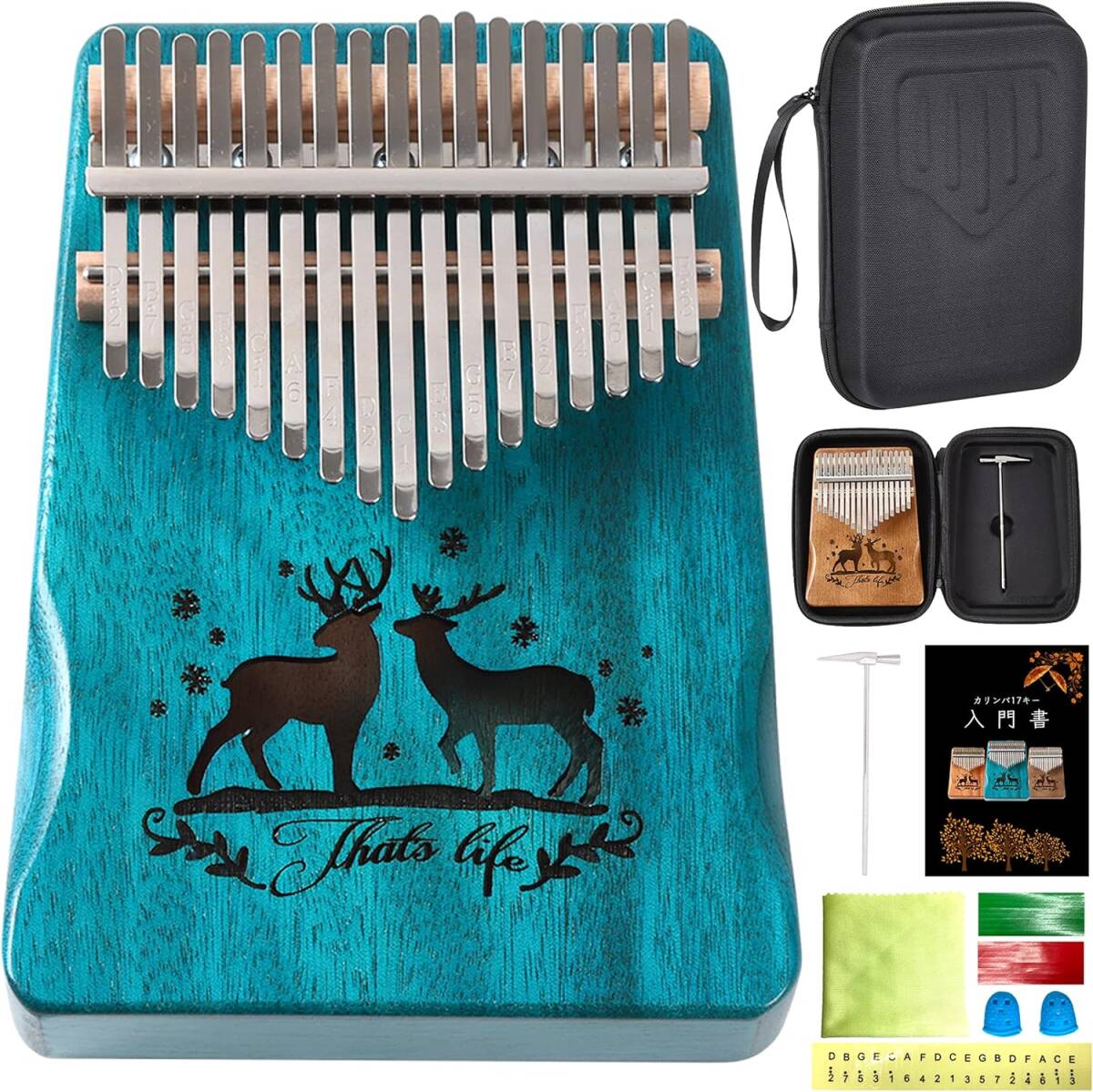 セルリアンブルー色 PERDIN カリンバ 初心者セット 17キー チューニング済み 日本語 楽譜付き 入門書付き ケース付き 刻印あり