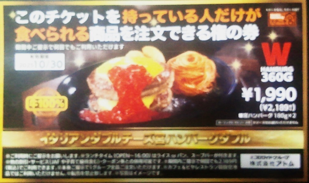 ステーキ宮 このチケットを持っている人だけが食べられる商品を注文できる権の券 1枚