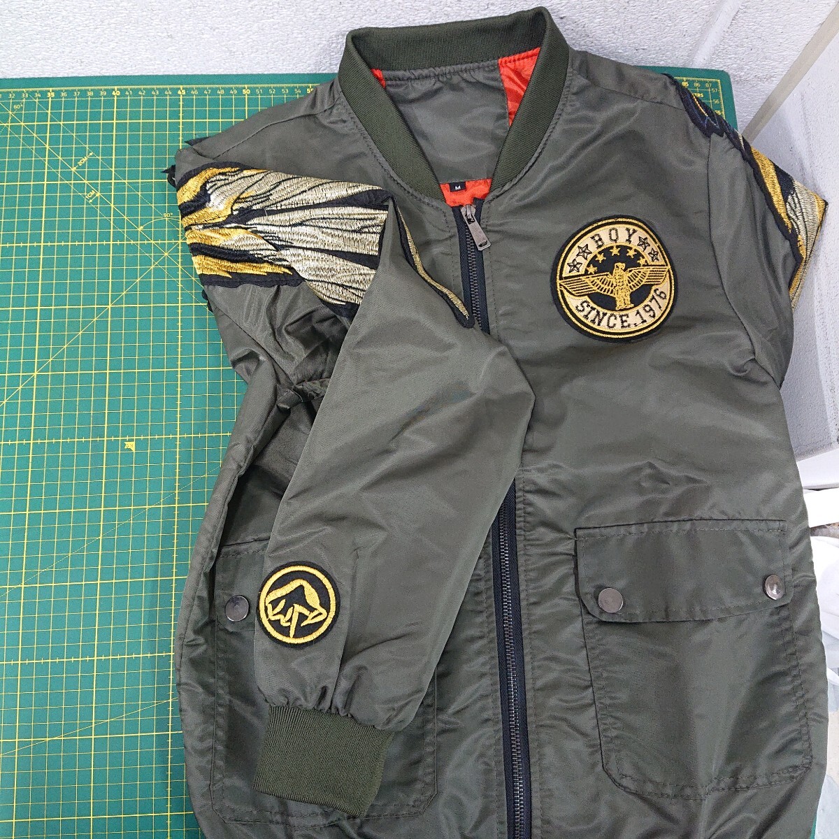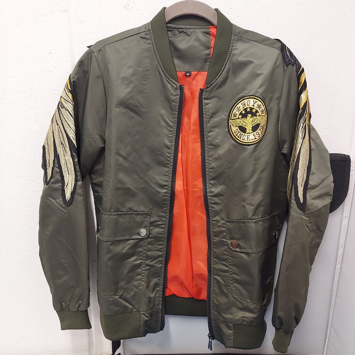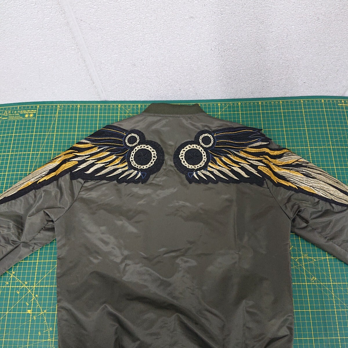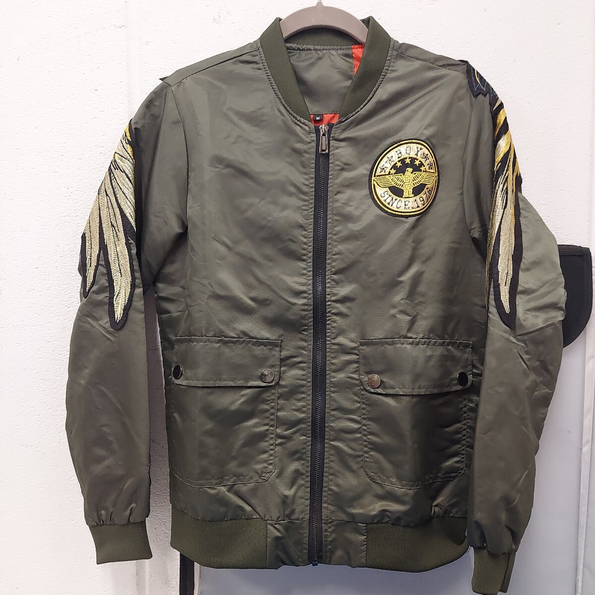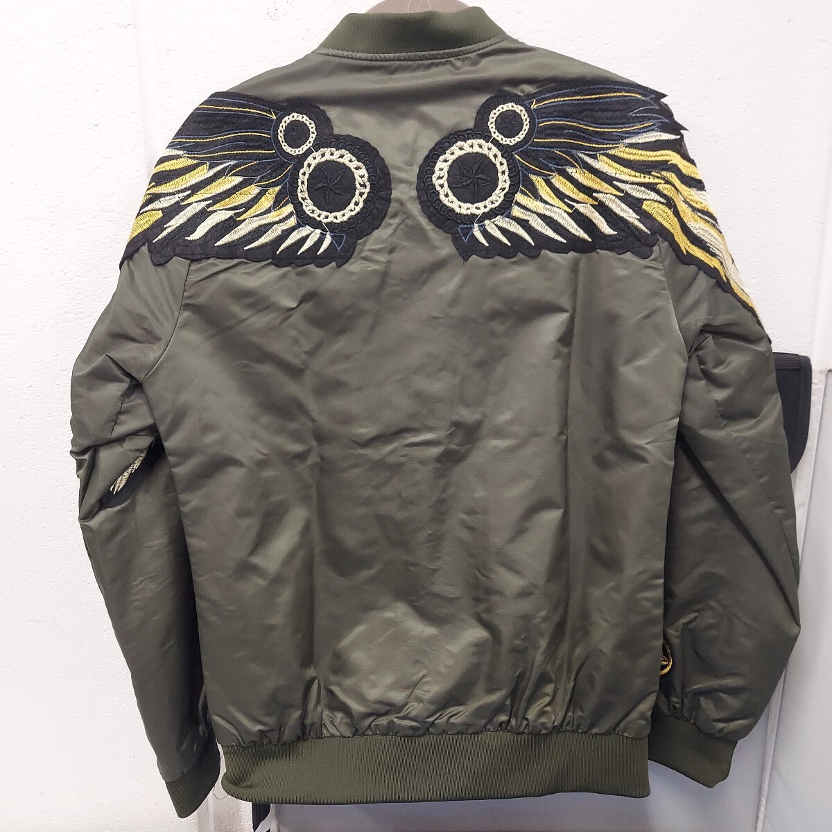 背中に羽の刺繍ワッペンがあり カッコ良いと思います。