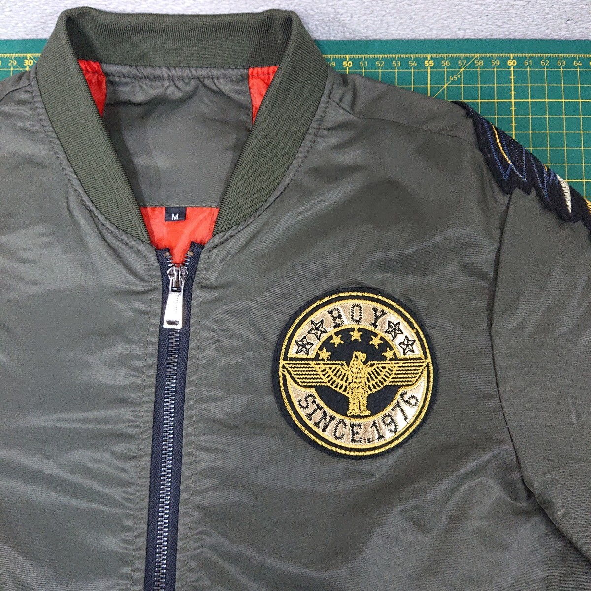 ほぼ未着用 刺繍 ワッペン ミリタリー MA-1 タイプ ジップアップ ジャケットの出品です。