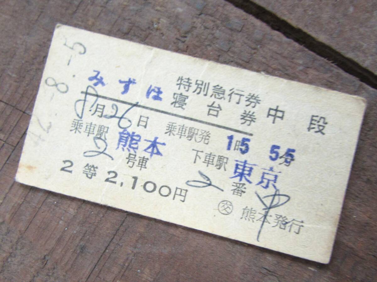 | 切符 A型硬券 みずほ 特別急行券 寝台券 2等 100円 昭和42年 熊本~東京 熊本駅発行 急行 レトロ 5 |