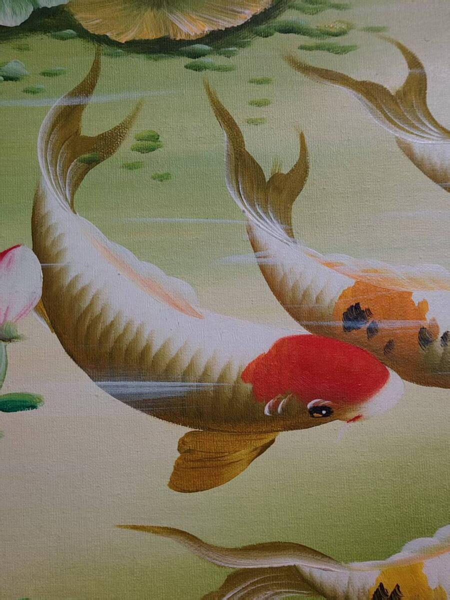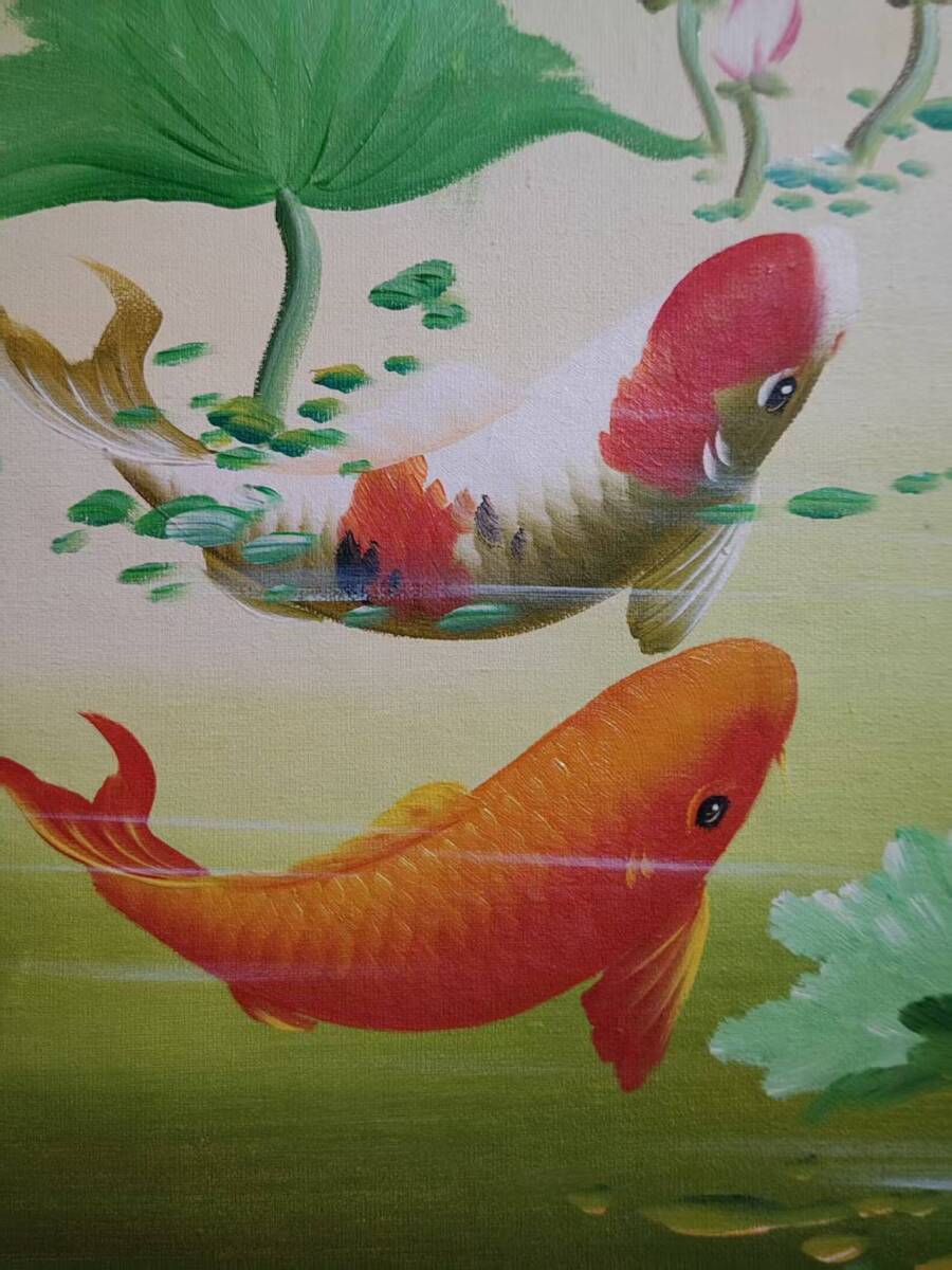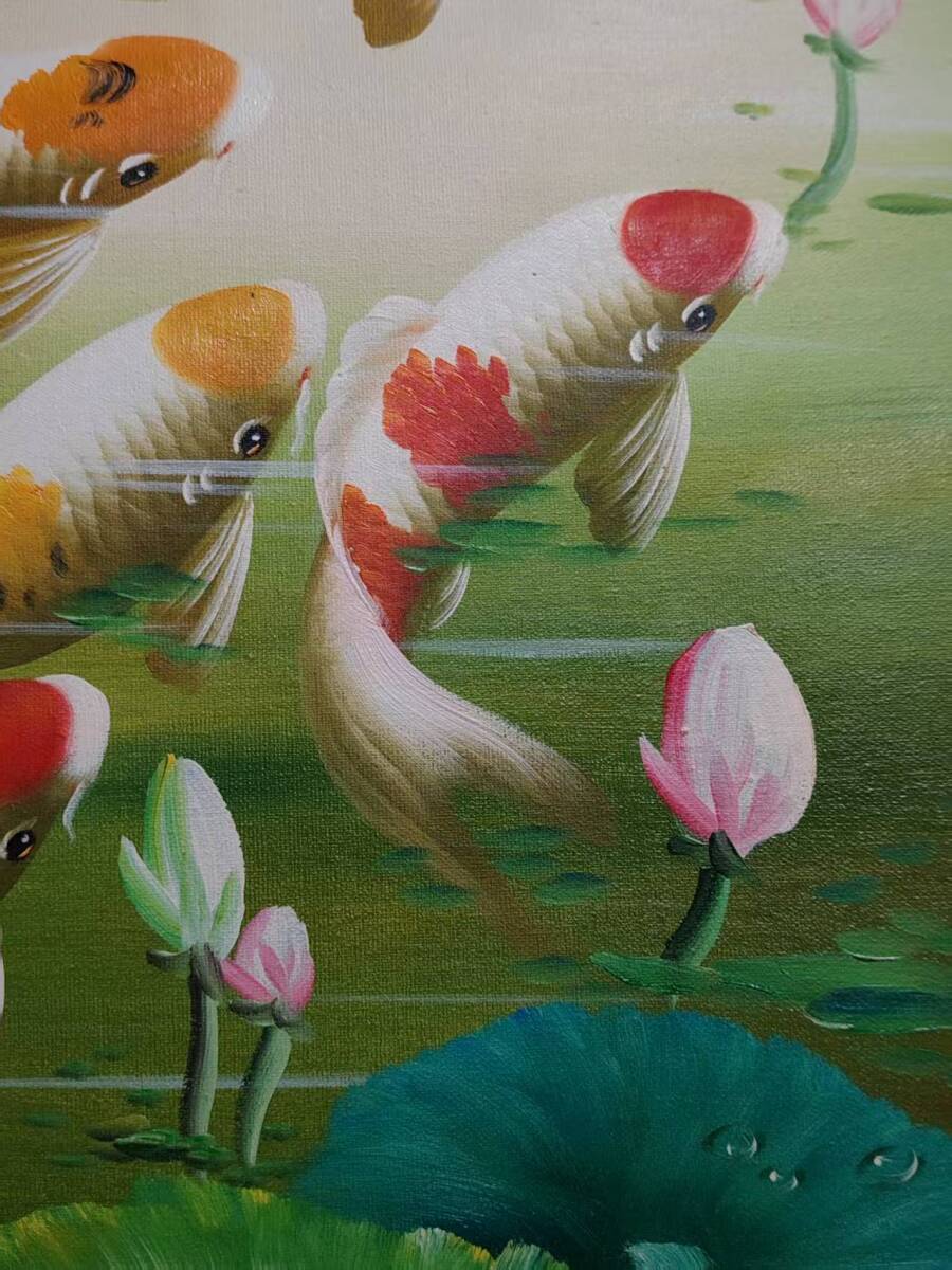 油彩 絵画 早期收集 y75 張東光 九魚圖 】手描き布油絵 油畫 旧藏 中国古画 純手描き画 古美術品 時代物 中国古玩 骨董品 925