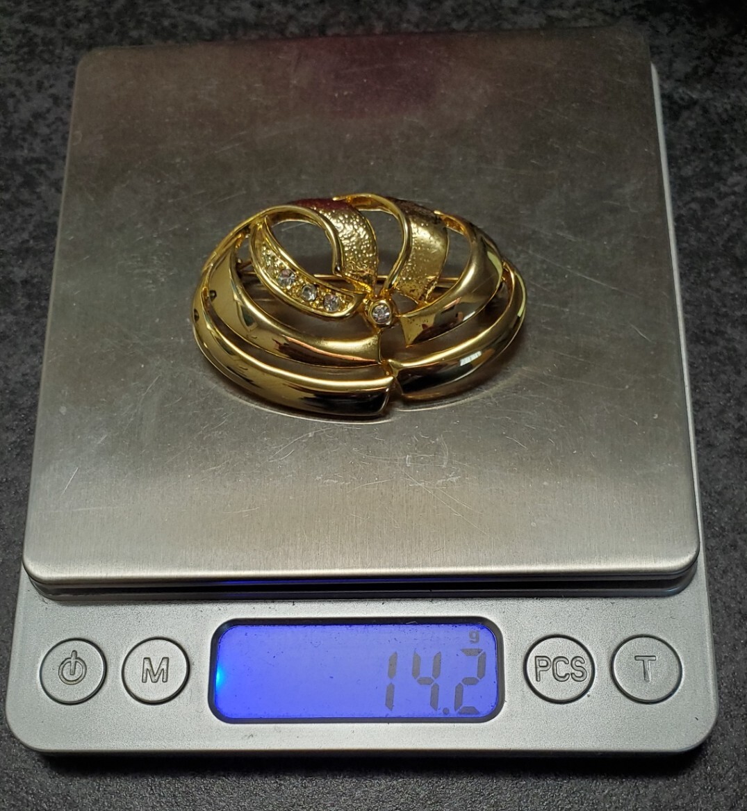 ラインストーン ブローチ  ゴールドカラー レディース  14,2g  美品