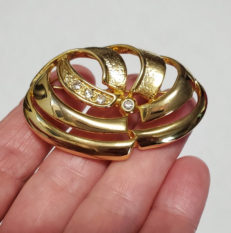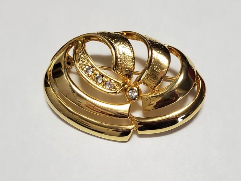 ラインストーン ブローチ  ゴールドカラー  レディース  14,2g  美品