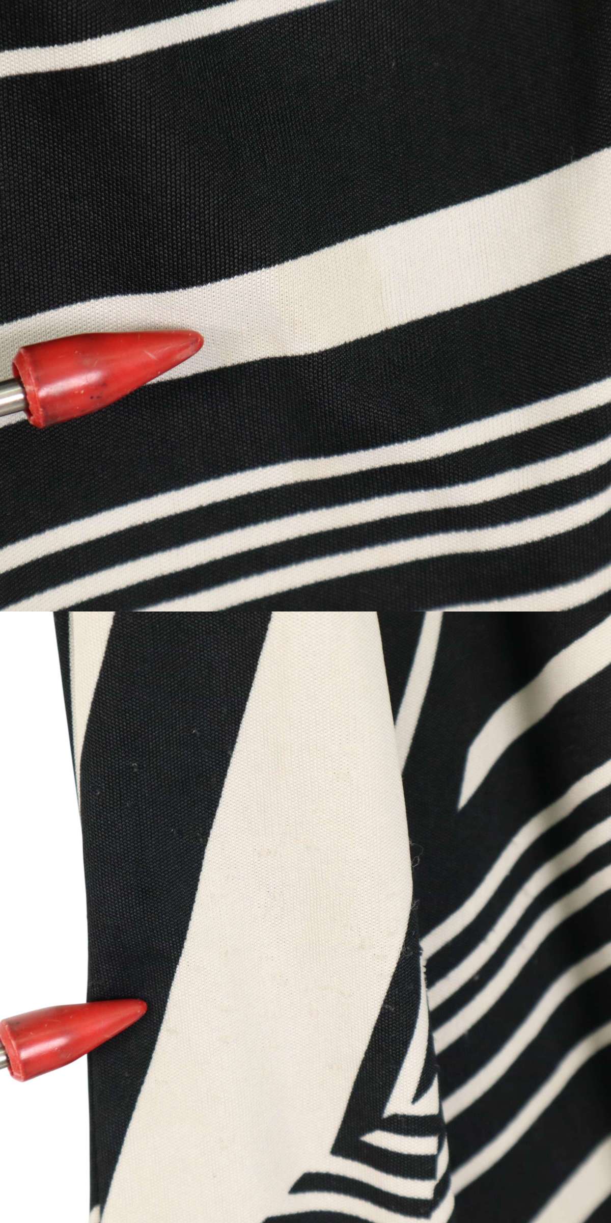 正面中央下にごくわずかな薄い汚れと右側にごくわずかな薄い糸のつれがございます。着用に問題はございません。