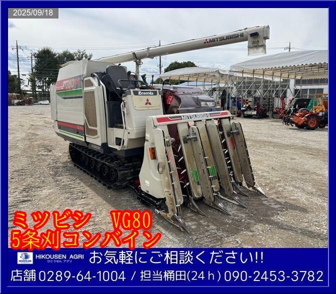 ★三菱:VG80:コンバイン:5条刈:80馬力:グレンタンク:デバイダー:自動水平:車体上下左右:ミツビシ:栃木:配送可:VG80:HIKOUSEN