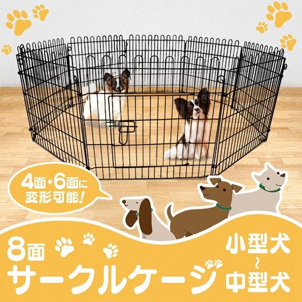 室内でもアウトドアでもご使用いただけます。 設置場所、用途に合わせ簡単に色んな形に出来ます♪ 組立ては超カンタンです! ウサギやモルモットなどの小さな動物でも使えます♪ 上部はワンちゃんが怪我をしないように丸く加工しています。 ドア付きで簡単に出入りできます。 もちろん、ロックで脱出防止! 屋外使用時に便利なペグが付属しています。 アウトドアやお庭で大活躍! ◆商品仕様◆ 形状:8面 1面サイズ(約):幅63cm×高さ64cm 入口サイズ(約):幅35cm×高さ33cm 本体重量(約):8kg 材質:スチール 扉の向き:右開き ◆商品内容◆ ドア付き柵 ×1 柵 ×7 ペグ ×8 固定ポール ×8 |