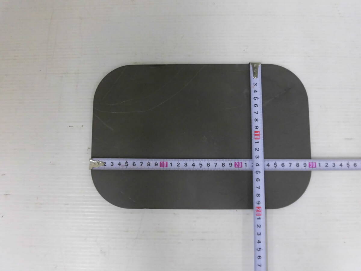 商品説明 | 材質 : スチール板(鉄板) サンセン 板厚 : 6mm サイズ : 約200mm x 約300mm (4隅50R位あります) 数量 : 1枚 重量 : 約2.6㌔ 実際の商品は、表示寸法より若干の誤差があります。 製品サイズ : ±2mm程度 サビが有ります。 | |