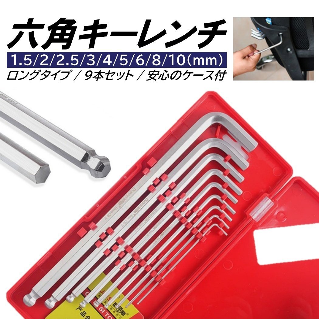六角レンチセット 六角棒レンチ ロング 9本組 ヘックスレンチ 六角 6角 ボールポイント 収納ケース レンチ ヘックスキー
