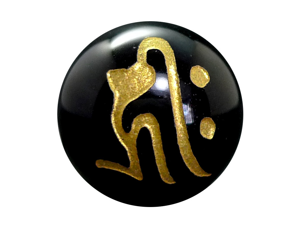 | 使用している 天然石 パワーストーン | 「キリーク」梵字金彫刻オニキス 14mm ■守護尊・干支 阿弥陀如来/戌・亥(いぬ・い) |
