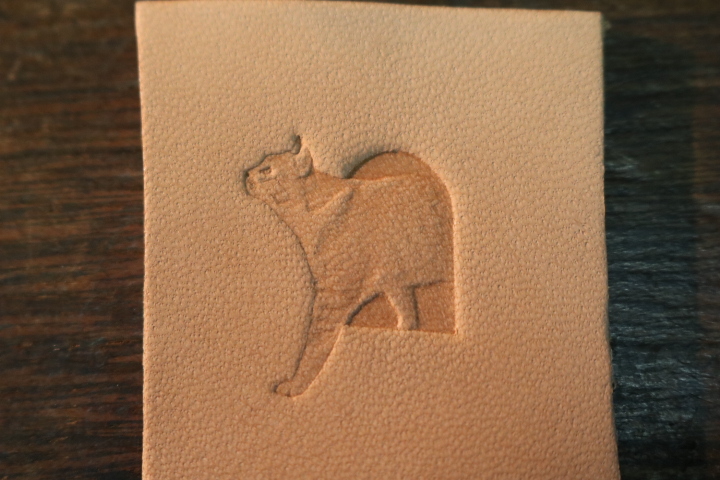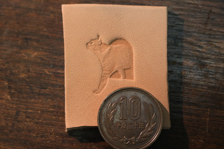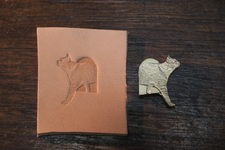 商品は革に押すと、革の中からネコが出てくるようなイメージで製作いたしました。