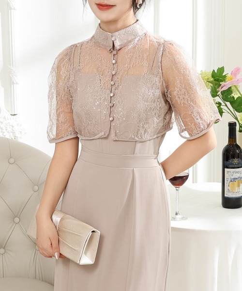 参考商品名:【2点セット】 レース ボレロ付き Vスリット キャミソール マーメイド ワンピース