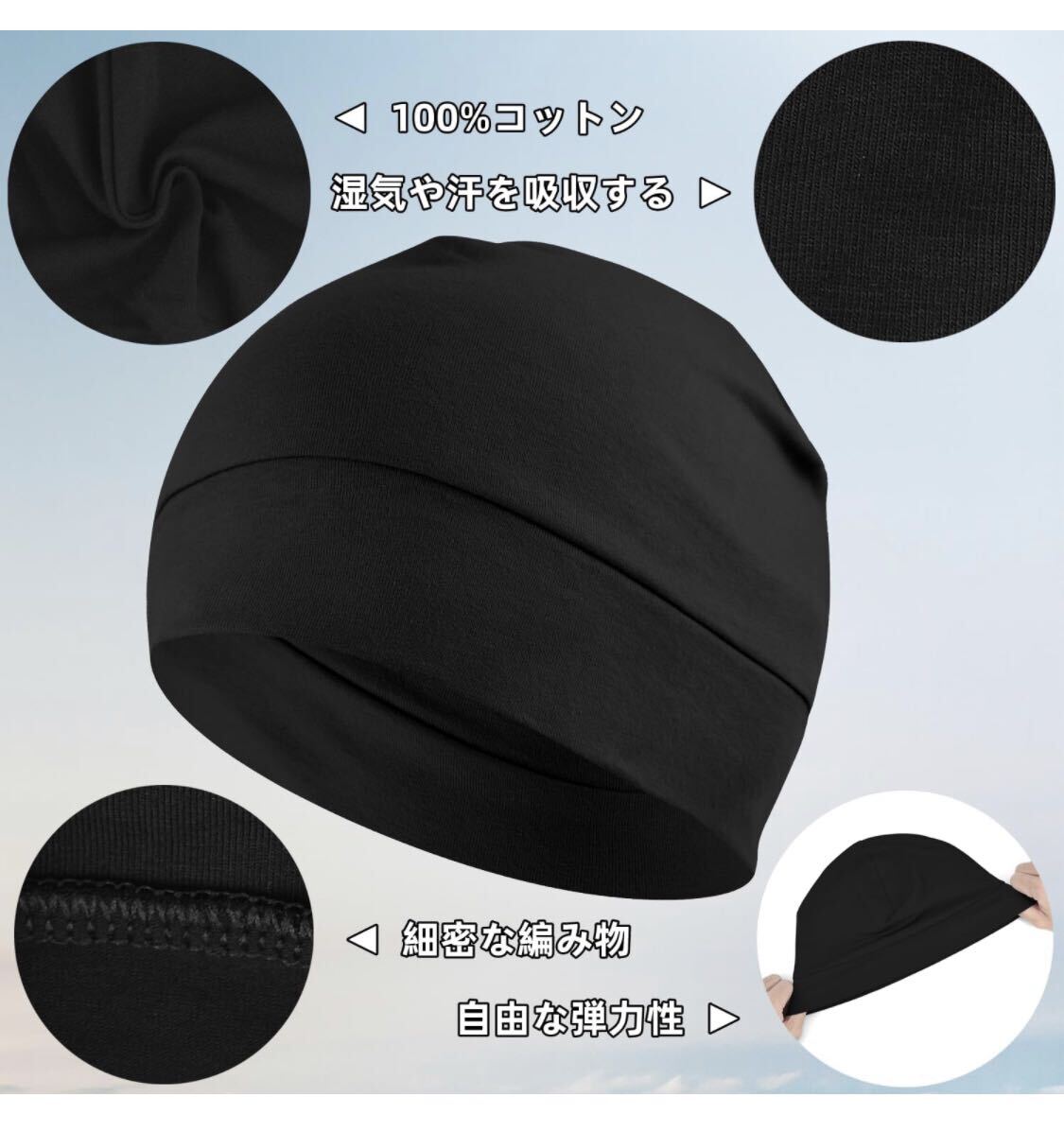 通気性抜群の綿素材】100%の綿素材を使用し、通気性が抜群です。長時間の着用でも快適で、頭皮を優しく保護します。