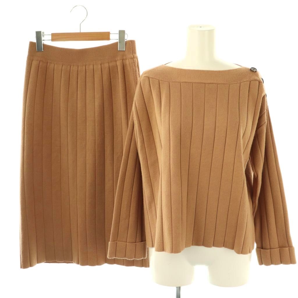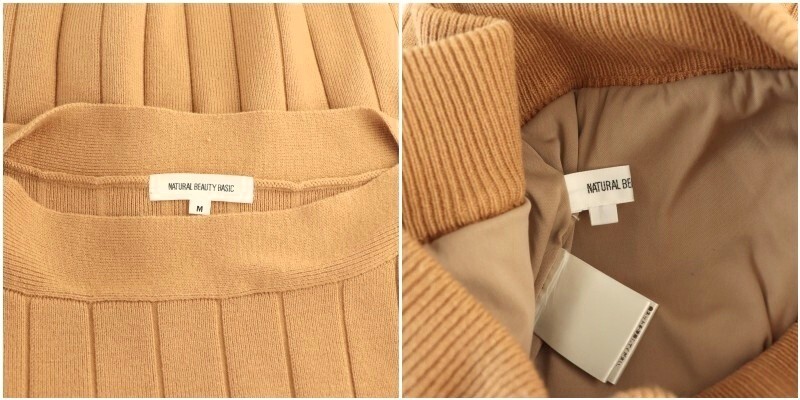 ナチュラルビューティーベーシック NATURAL BEAUTY BASIC ワイドリブニットセットアップ セーター スカート ロング タイト M ベージュ
