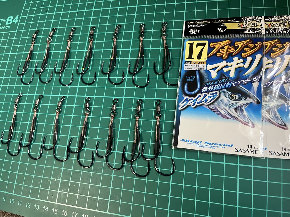 アキアジマキリケイムラ17号を浮きルアー用にアシストフック作成しました