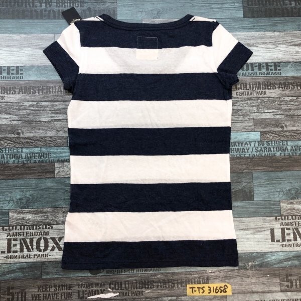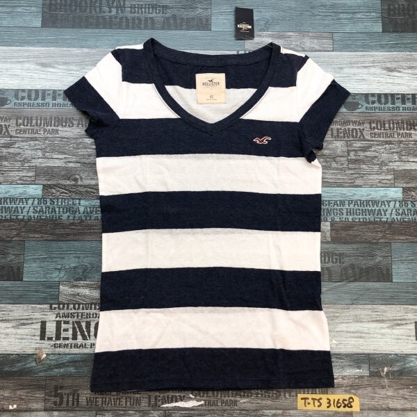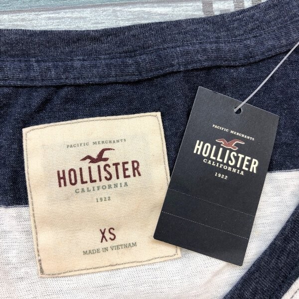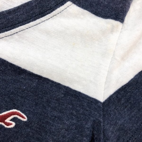 訳あり新品!Hollister ホリスター レディース ボーダー Vネック 半袖Tシャツ 小さいサイズ XS 紺白 です。