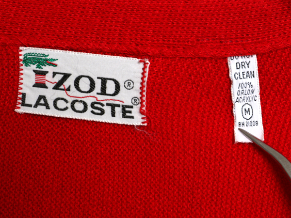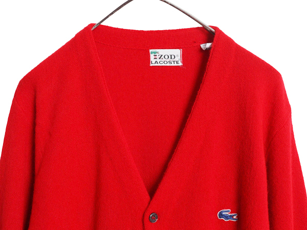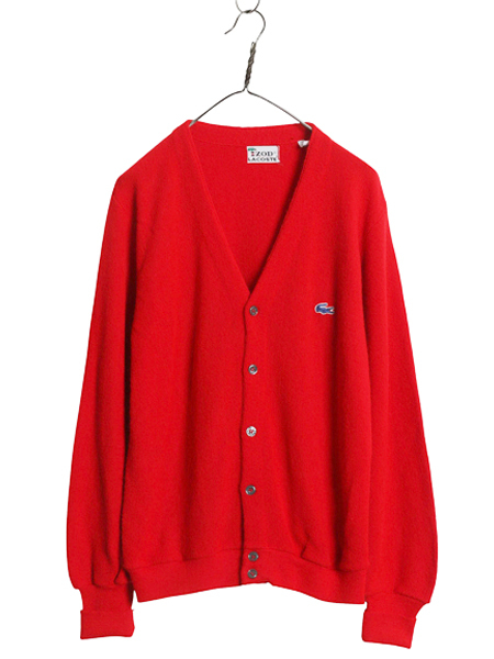 商品名 | 70s USA製 ラコステ アクリル ニット カーディガン メンズ レディース M / 古着 ヴィンテージ 羽織り 前開き セーター ワンポイント レッド |
