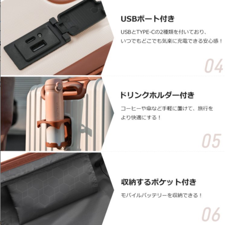 スーツケース Mサイズ USB充電ポート付き ドリンクホルダー付き キャリーバッグ キャリーケース 4日 7日 中型 TSAロック搭載