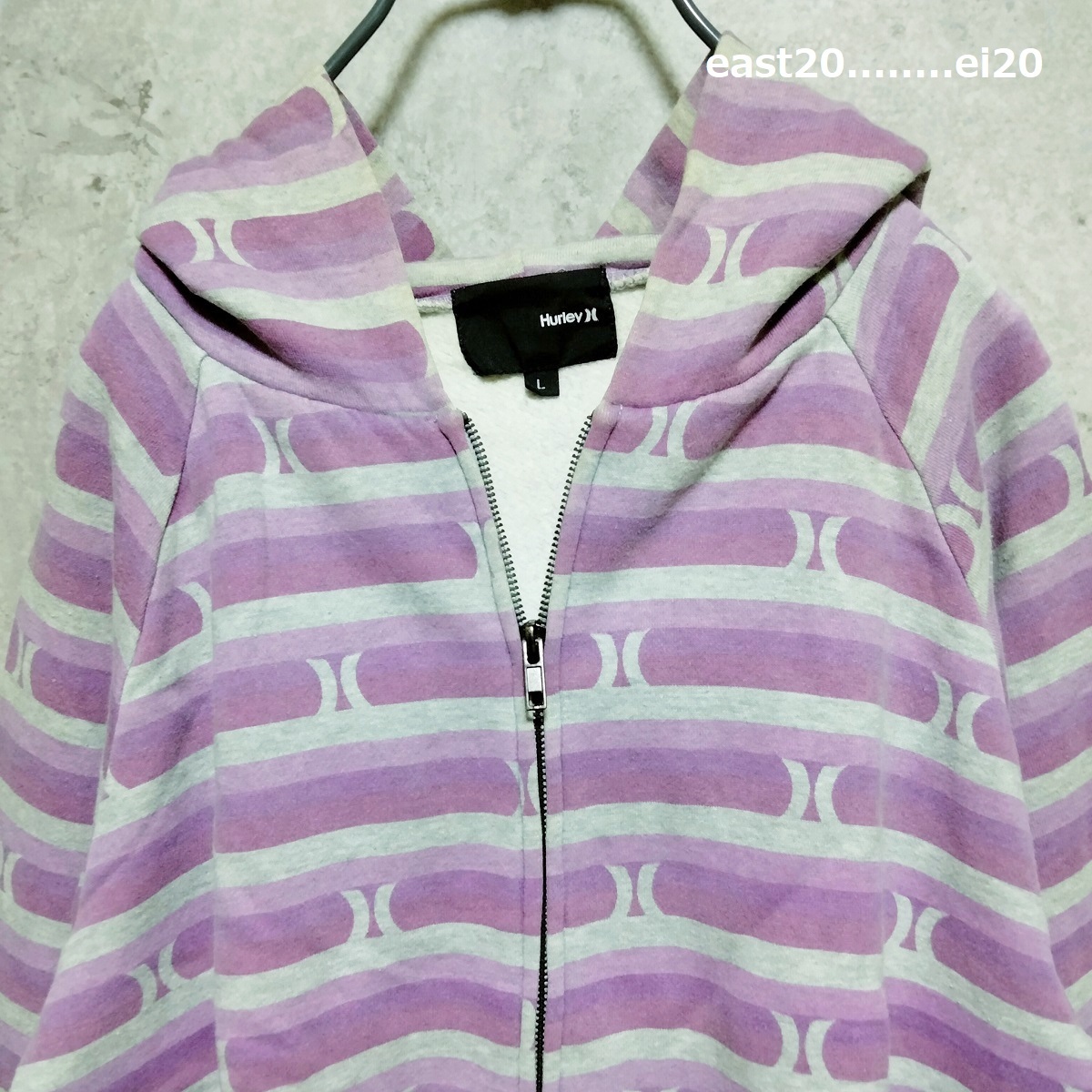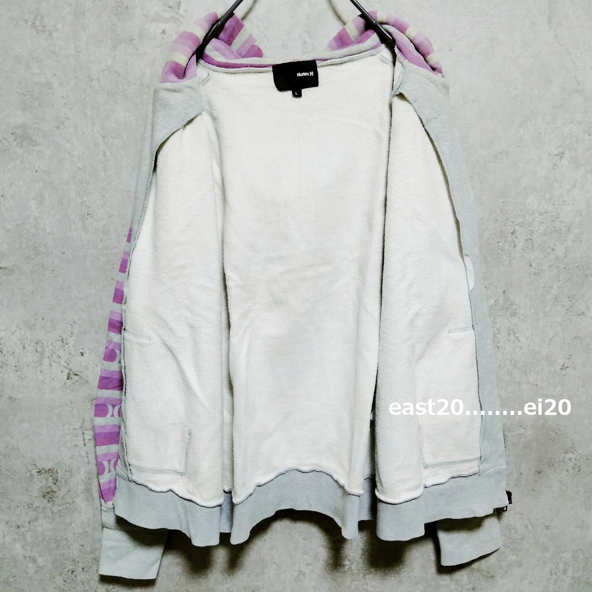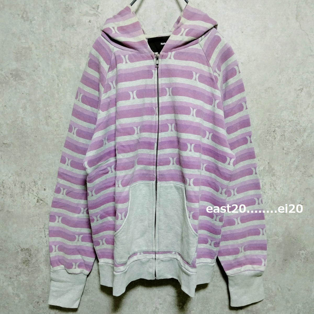 Hurley ハーレー ロゴ ボーダー 柄 メンズ スウェット フーディ ジップ パーカー L グレー パープル アメカジ サーフ ブランド 送料無料