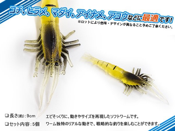 エビ型ワーム 5個セット ルアーセット ルアー エビワーム ソフトワーム 9cm/90mm 8g 疑似餌 擬似餌 コチ ヒラメ マダイ アイナメ アコウ