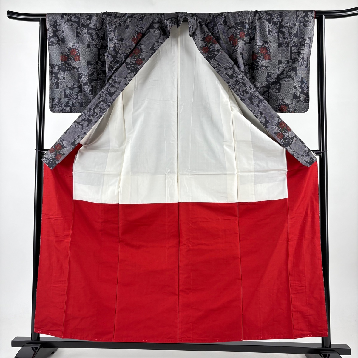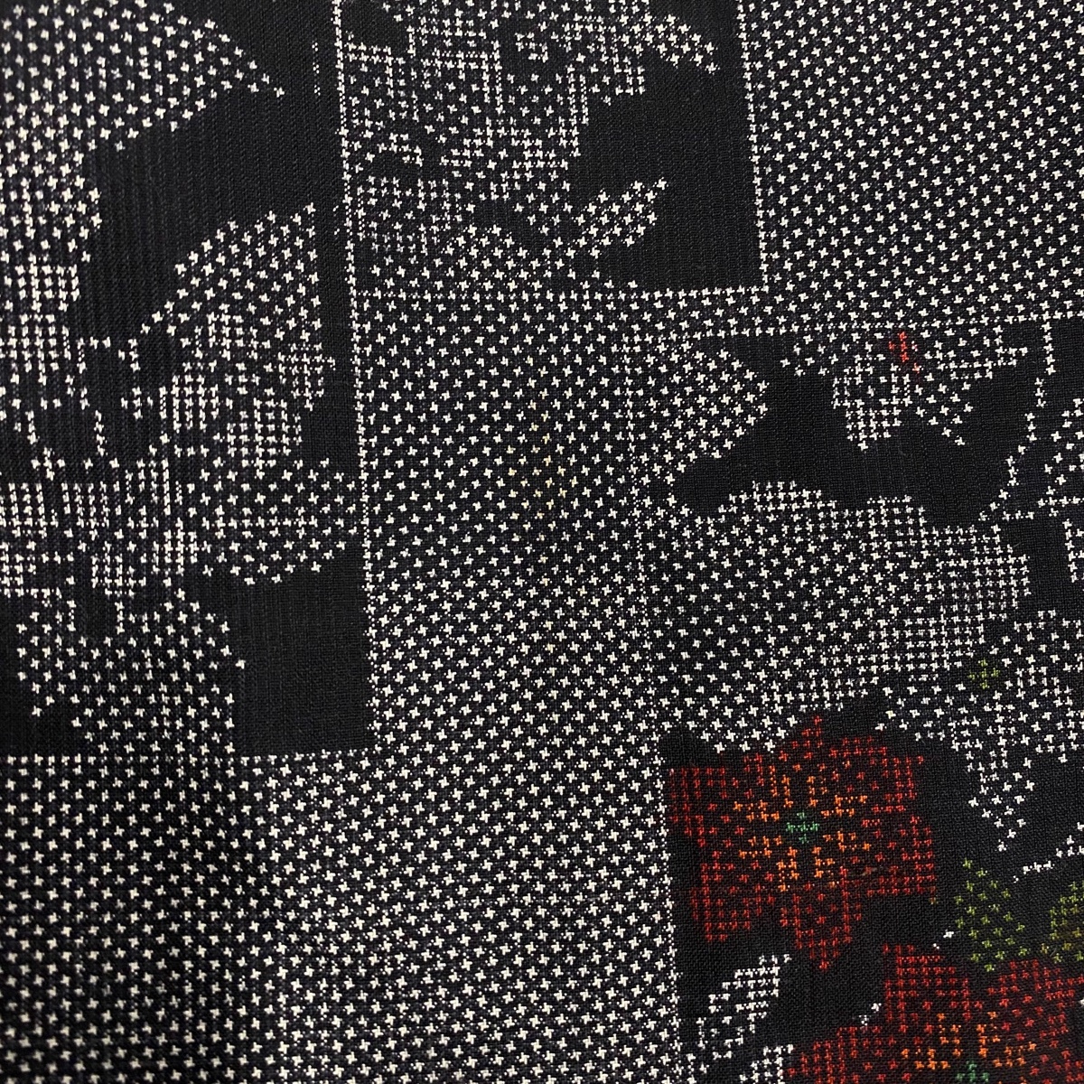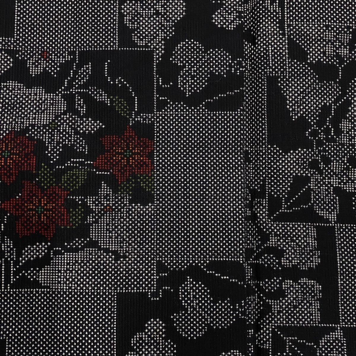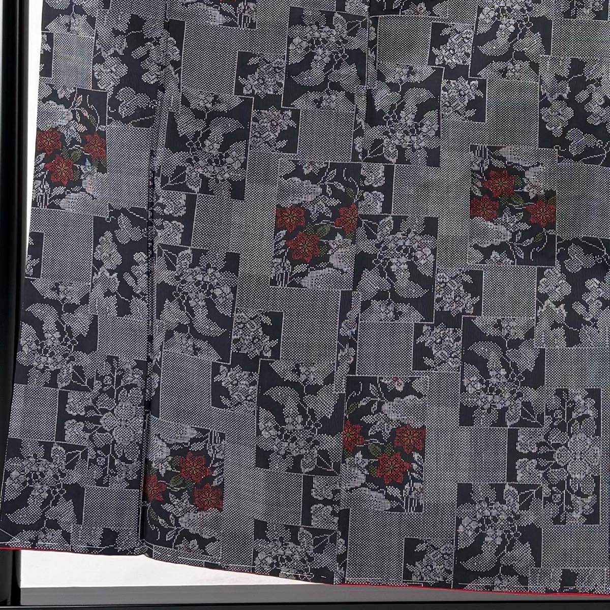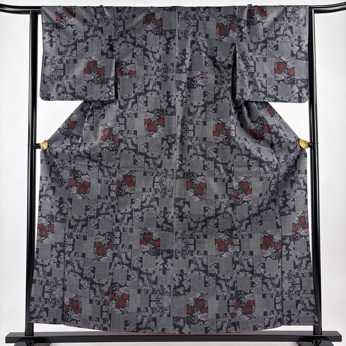 | 紬 秀品 草花 色紙 濃紺 袷 身丈158 裄丈63 S 正絹 【中古】 |