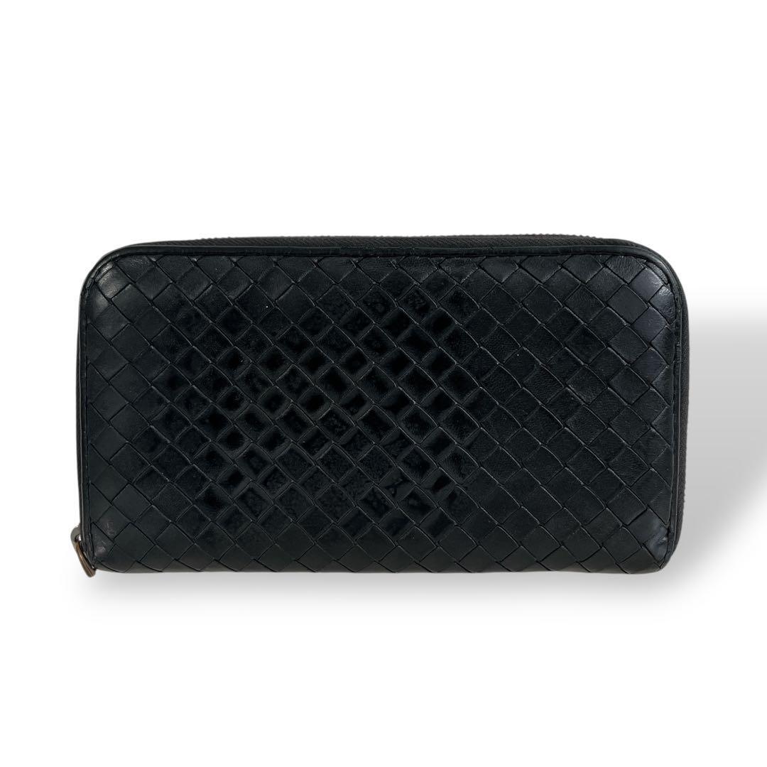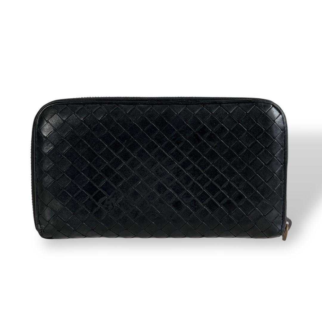 BOTTEGA VENETA ブラック レザー ラウンドファスナー ロゴ型押し 型押しロゴ