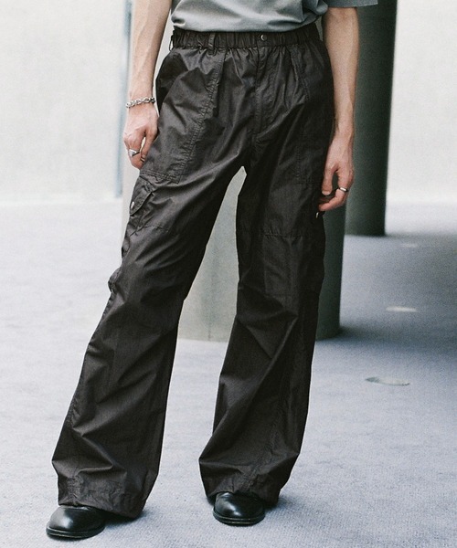 キーワード:カーゴパンツ メンズ ウエストゴム フルレングス フレアパンツ レギュラー ワイドパンツ 無地
