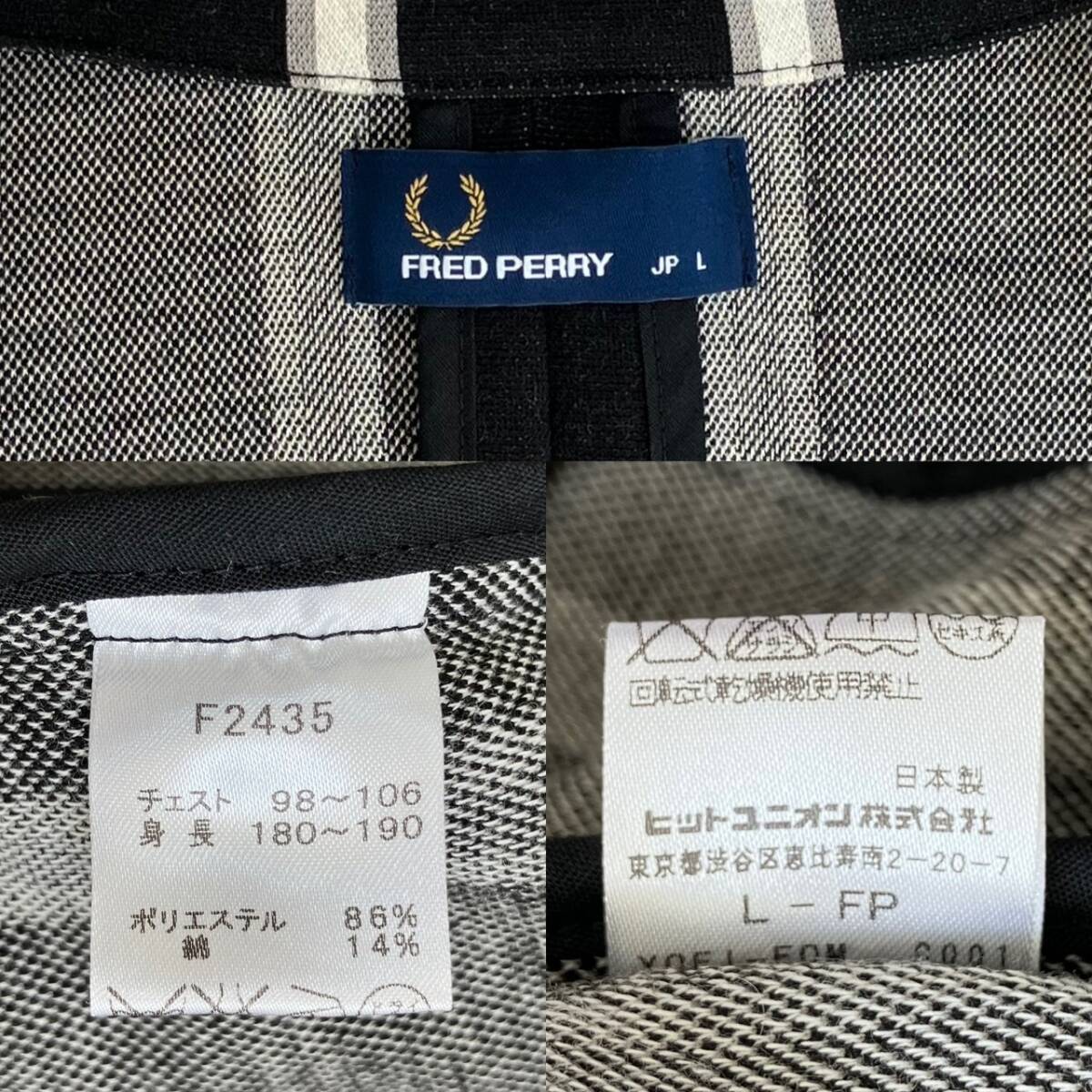 希少L!極美品!フレッドペリー FRED PERRY テーラードジャケット アンコン 刺繍ロゴ 本切羽 伸縮性 ストライプ メンズ ビジネス ブラック 黒