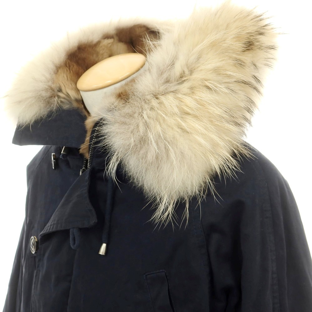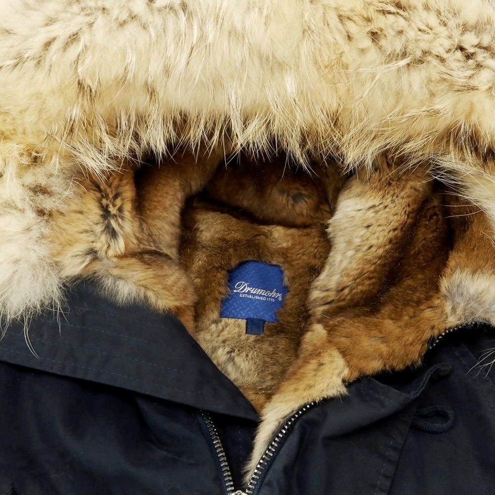 滑らかなタッチのマットな質感の生地に今や貴重となったラクーンファーをあしらった、DRUMOHR(ドルモア)のミリタリーコートです。ライニングには贅沢にラビットファー使用し、カジュアルながらゴージャス感のある一着に仕上げられています。