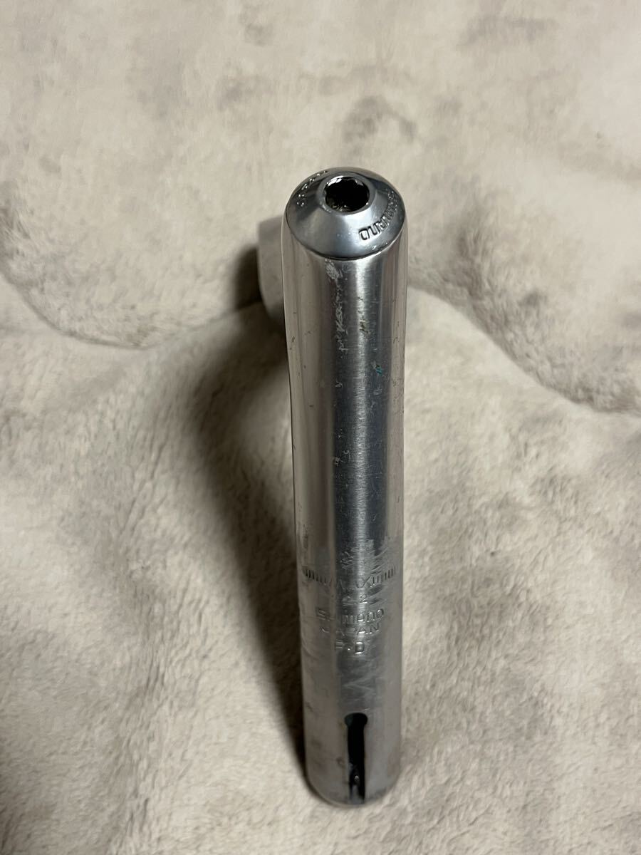 シマノデュラエース 7300 AXのハンドルステム 100mm中古です。取り付け傷はありますが、40年前のものとしては、悪くないと思います。フロントのマークもしっかり読めます。探しているかの入札をお願いします。ノーリターン、ノークレームで、レターパック600円で発送します。