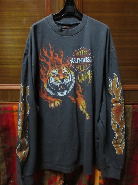 1点のみ 海外 ハーレーダビットソン ロングスリーブ 虎 長袖 Tシャツ ロンT Harley Davidson ロンT■フレイム ファイア ファイヤーパターン
