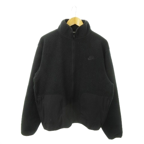 ナイキ NIKE クラブ Club フリース ウィンタライズド ジャケット スタンドカラー ジップアップ ボア 切替 ロゴ刺繍 S 黒 ブラック