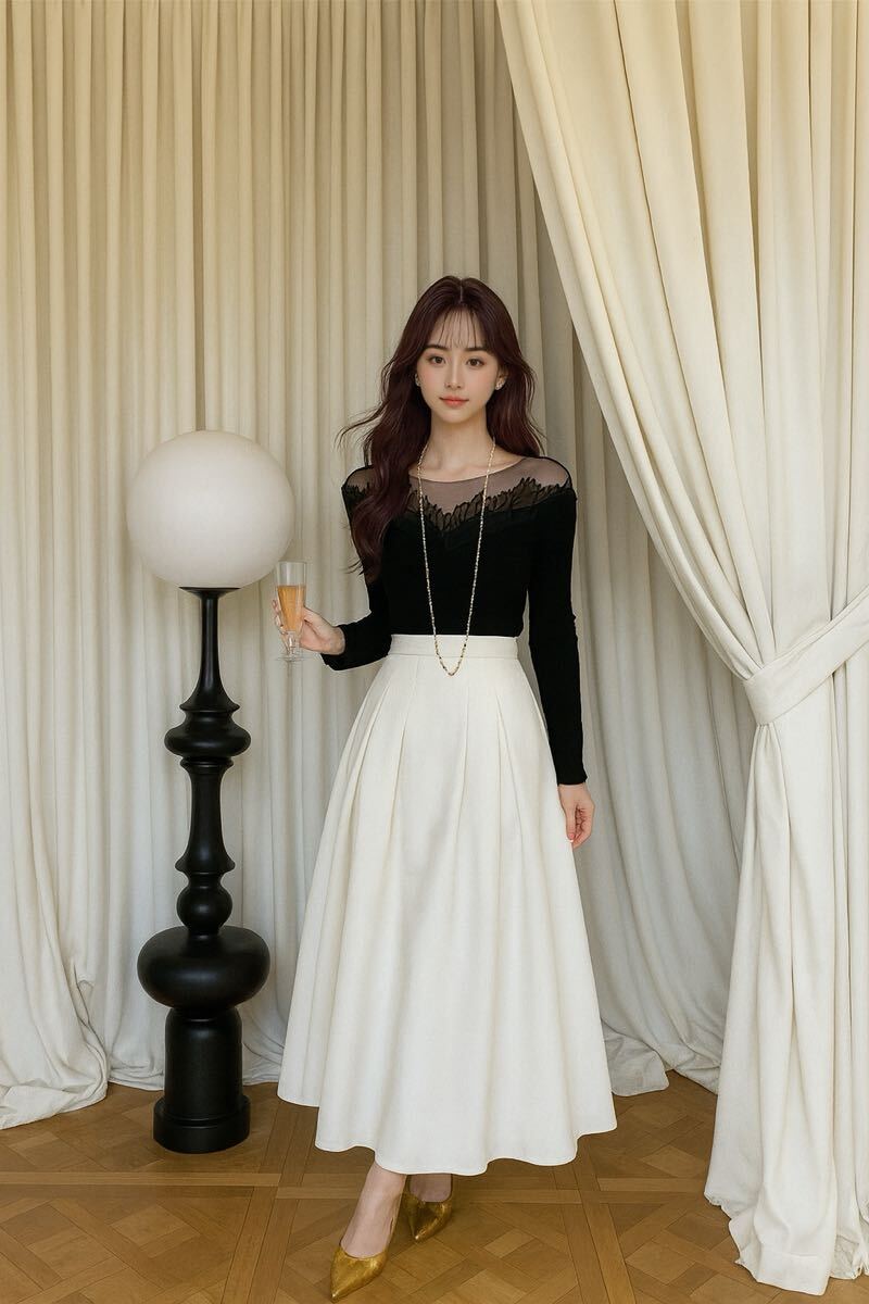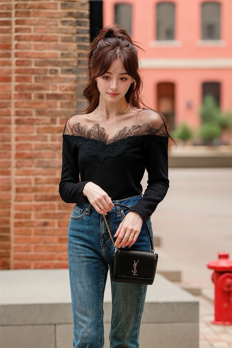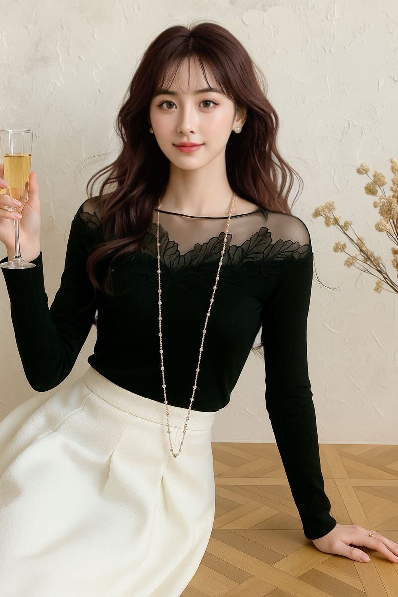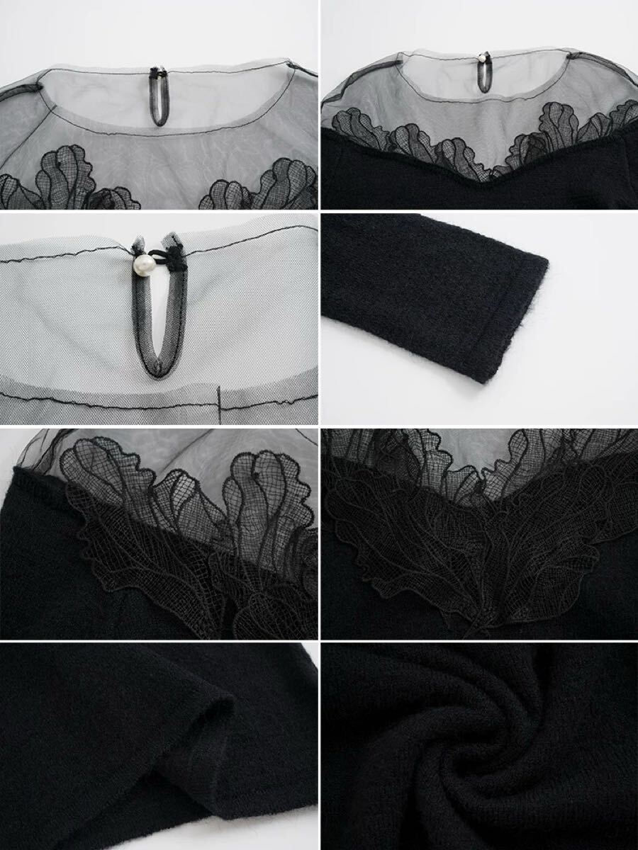 新品未使用 シアー オフショル ニット トップス ブラック レース ブーケ 花 フラワー DHOLIC qung 韓国ファッション