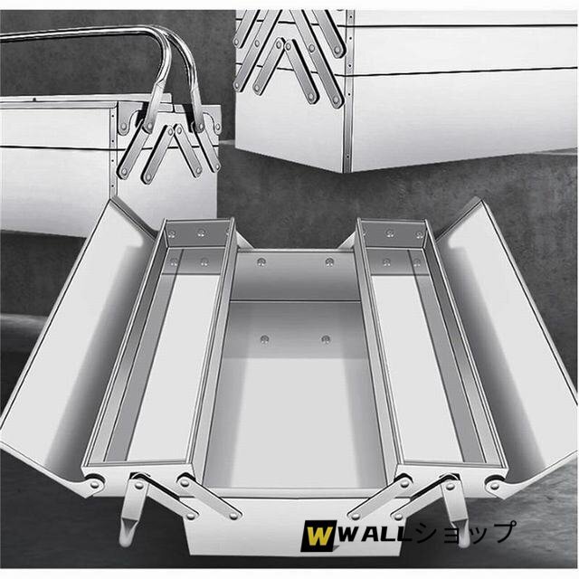 ステンレス鋼折りたたみ式 ツールボックス 3段 両開き 大型 工具ケース 収納 工具収納 ツールボックスケース 大容量 工具入れ 防錆 46cm