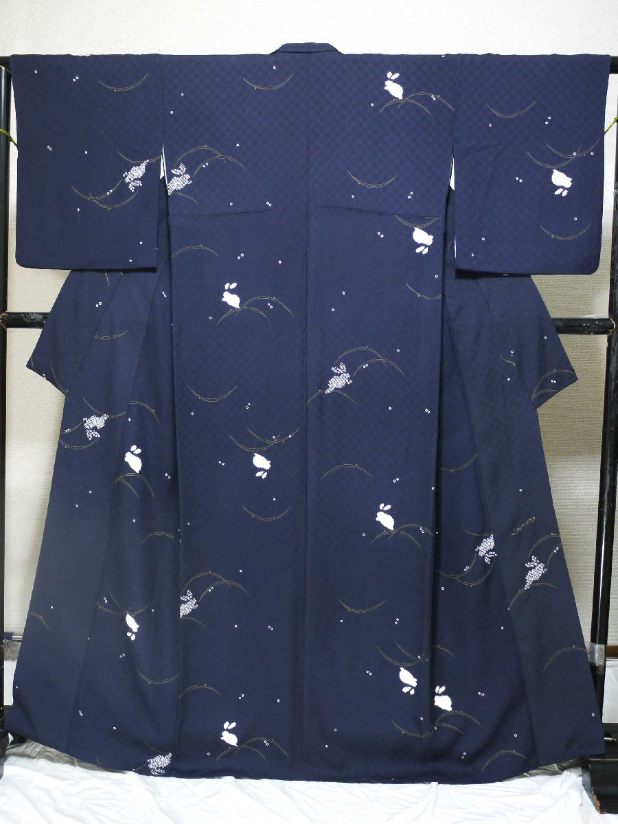 商品名 | 小紋【コシノヒロコ】濃紺地 小帽子絞りと疋田絞りのウサギ・166㎝ 50609 |