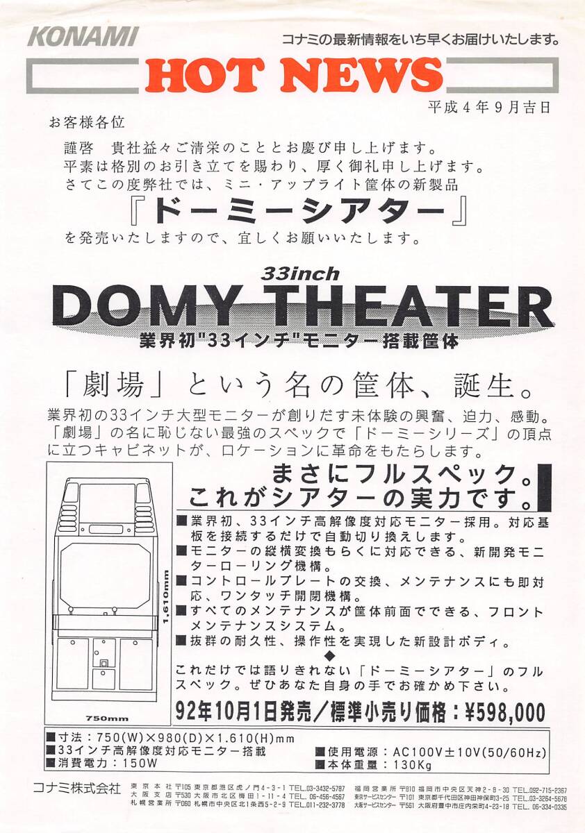 【コナミ】HOT NEWS ドーミーシアター筐体 カタログ