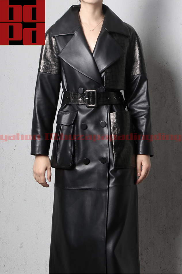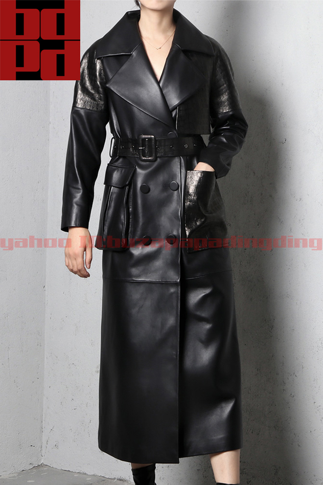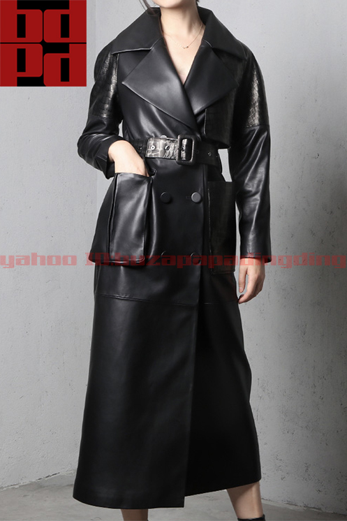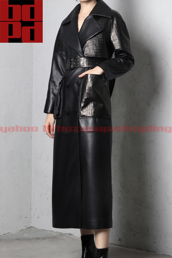 上質輸入ラムレザー アシンメトリー 大ポケット ロングコート デザイン性 秋冬 レディース 本革 きれいめ おしゃれ かっこいい 女性 Z82