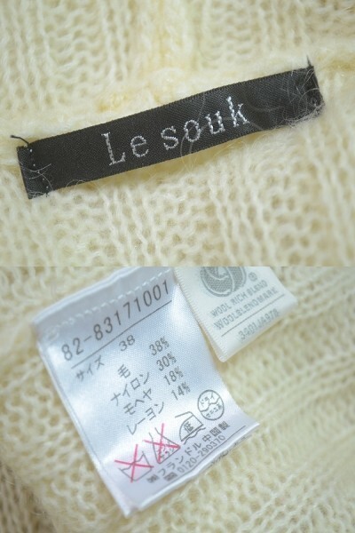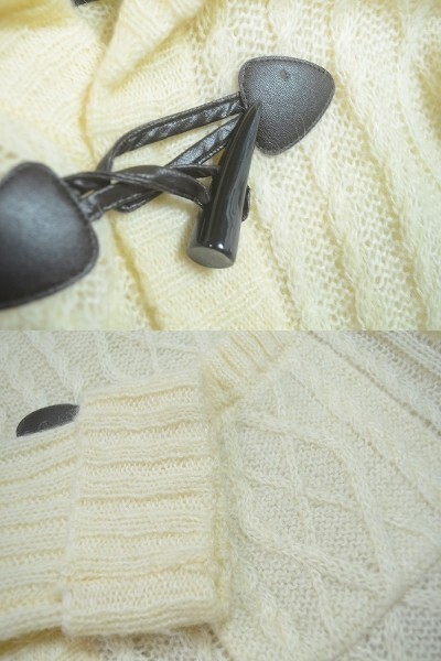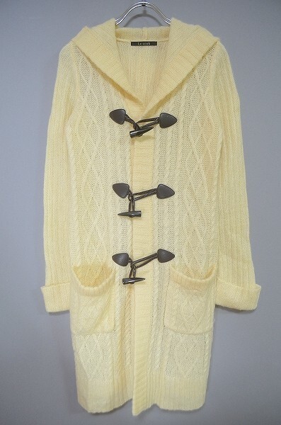 A733/美品 春夏 薄手 Le souk ルスーク ウール モヘヤ フード付き ケーブル ニット ダッフルコート 38 クリーム色/レディース カーディガン