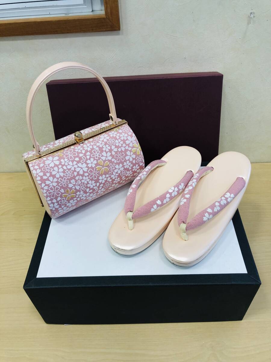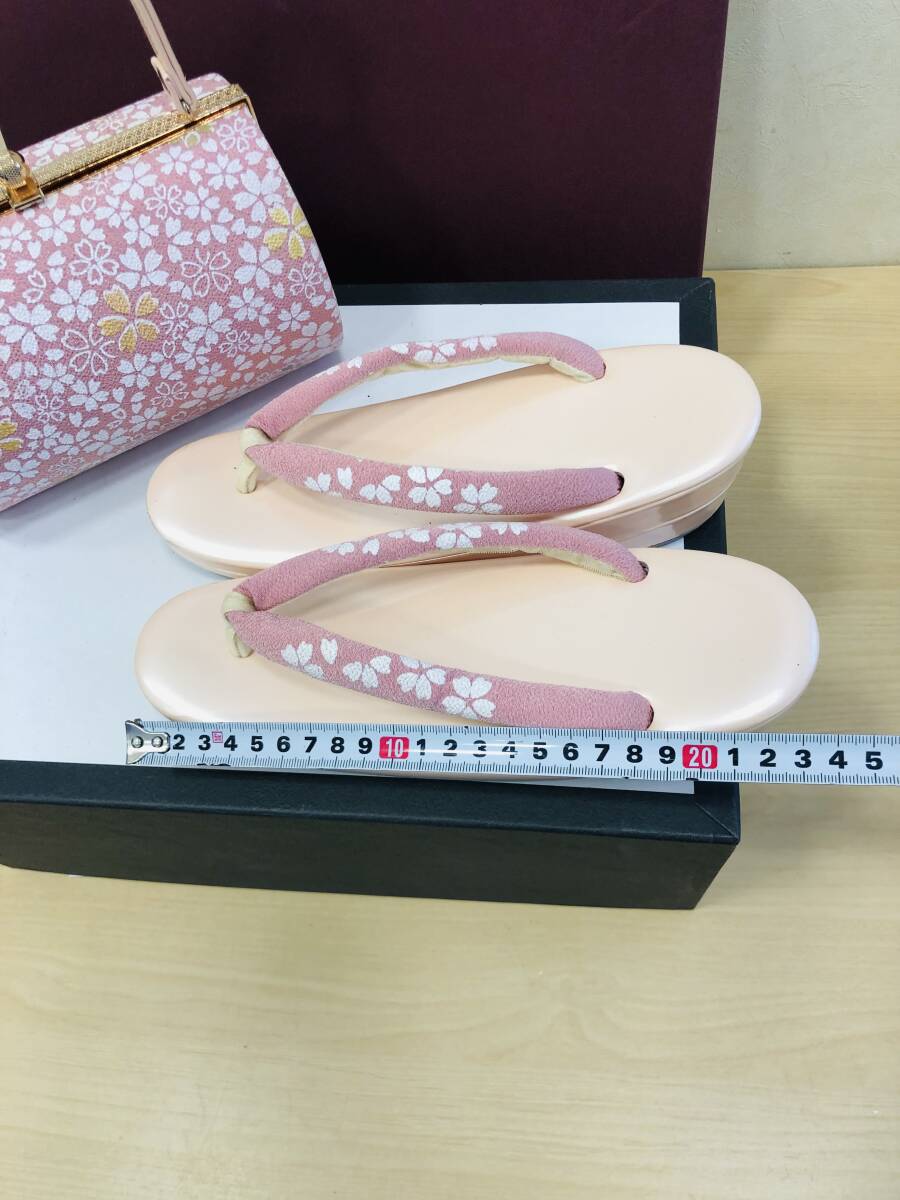 1円~ 草履バッグセット★卒業式 成人式 袴姿 振り袖 バック 桜柄 ピンク 可愛い LLサイズ 箱付き バッグ美品