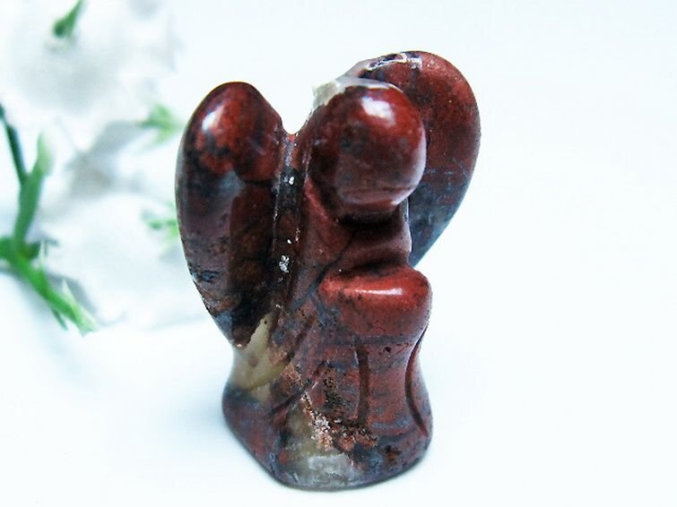 ■商品名: 赤アゲート天使置物 ■商品ID: T585-2574 ■商品重量:約 3.9g ■商品サイズ: 高約:20mm 横約:16mm 厚約:11mm 【アゲート(瑪瑙)】 和名では瑪瑙(めのう)といい、アゲートの模様が馬の脳のように見える事からこのような名前が付けられました。 アゲートは赤、緑、青、黄、黒など、様々な色に着色されることで石本来のパワーがさらにアップするといわれており、着色により魅力を増す天然石はアゲートだけとも言えます。 さらにはアゲートを組み合わせるとペアになっているペアアゲート(トレジャーメノウ)は龍穴を生み出すとされ、風水的にも良いといわれています。 アゲートは古来より日本やインドやチベットなどで魔よけやお守りとされてきました。 失敗や不幸を遠ざけ金運や仕事運、成功運とも結び付けてくれる効果のほか、安産のお守りにも良いとされています。 さらに家庭円満や対人関係をスムーズにするなど、オールマイティな効果を持った石です。 ⇒ アゲートをもっと詳しく ◆ワンポイント情報 アゲートはカルセドニーの変種で、染色がされていなくともそれぞれの種類に多様な色があります。 ざっと仲間を挙げてみてもオニキス(黒)、サードニクス(橙色)、ブルーアゲート(青)、グリーンアゲート(緑)、イエローアゲート(黄)、ブルーレースアゲート(縞青)、モスアゲート(縞緑)、天眼石(縞黒)、カーネリアン(橙色)、ジャスパー(多様な縞)などとても多くの特徴と色合いを持っています。 |