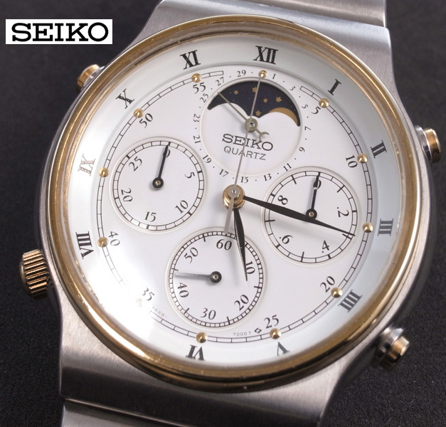 1988年3月 セイコー クロノグラフ 7A48-7000 ムーンフェイズ メンズ 極美