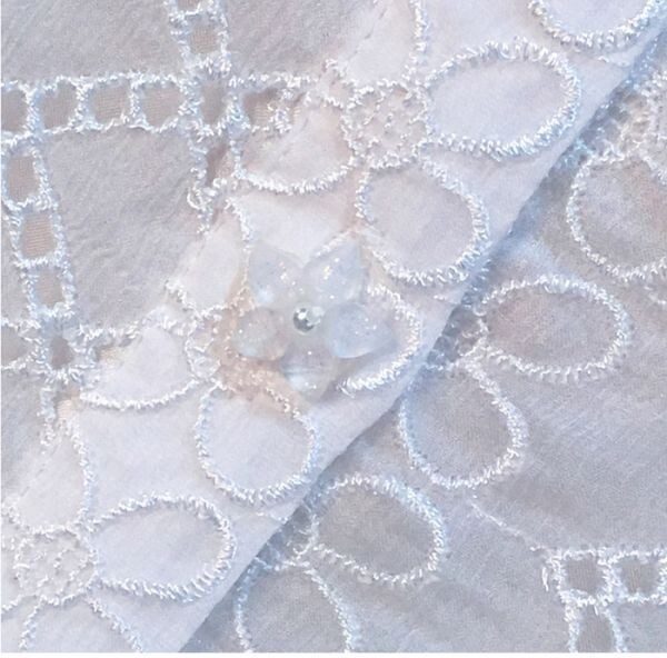 Tシャツ 前開き 半袖 花柄刺 ボタン付き ラウンドカラー レディース ホワイト S
