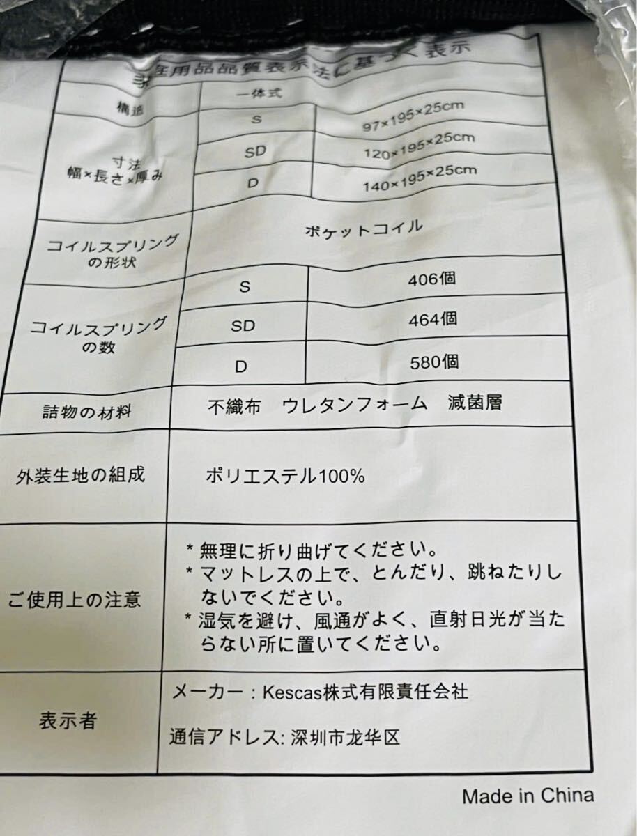 Kescas マットレ極厚25cm 高反発 高密度 ベットマットレス ダブル(140×195×25)