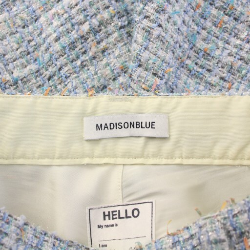 マディソンブルー MADISONBLUE 24SS 5POCKET REMAKE A-LINE SK F.TWEED 5ポケットリメイクAラインツイードスカート フレア ひざ丈 水色