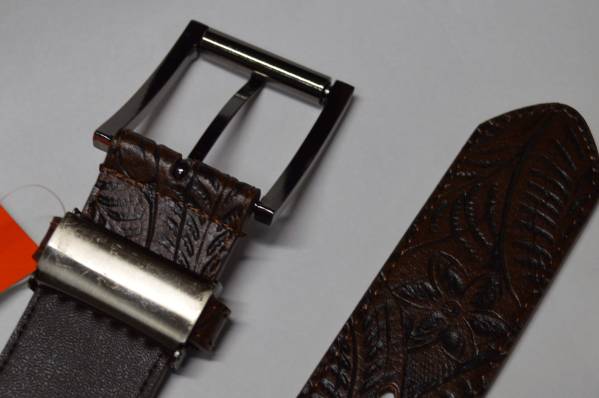 唐草柄型押し★レザーベルト★W100cmまで対応★LY156/BR