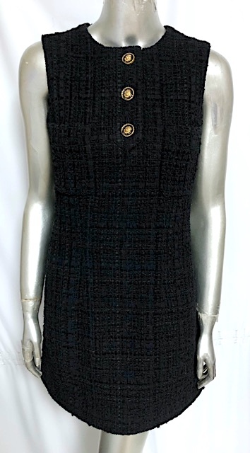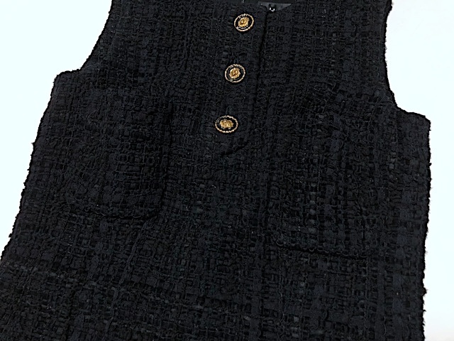 CHANEL tweed dress sleeveless Coco Mark button vintage black