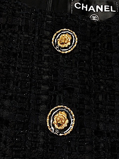 CHANEL シャネル ツイードドレス ノースリーブワンピース ココマーク ボタン ヴィンテージ 黒 ブラック フォーマル パーティー